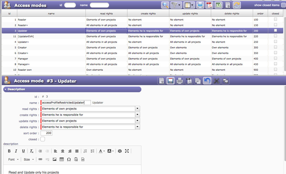 Because the list is the save for all actions...I wonder why it is possible to set "Elements he is responsible for" in the "create right" column when it has no sense? Shouldn't be filtered out?