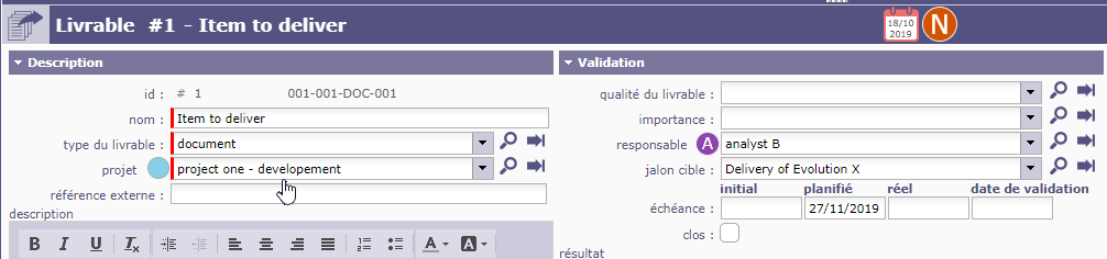 - if the milestone is a floating one : the deliverable is a predecessor of the milestone, in this case the due date of the deliverable is the validated date of the milestone.