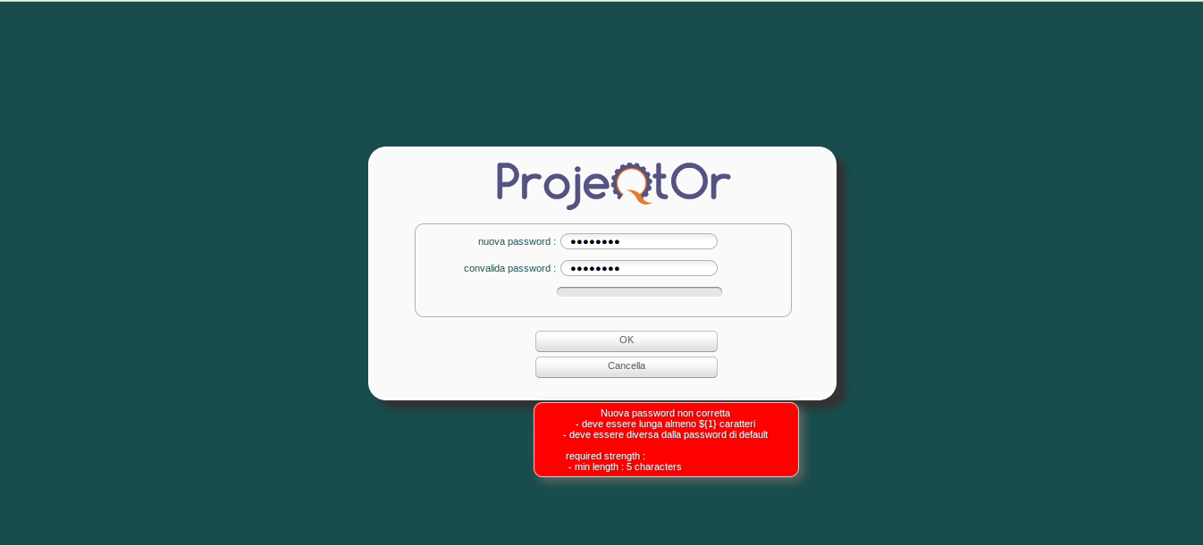 EVERY new istance to start or login projeqtor is now blocked from this password validation mask until I reinitiate the program erasing parametersLocation.php from tool.