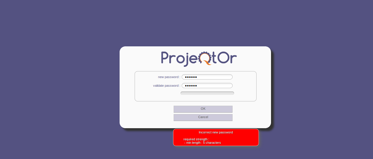 ProjeQtOr free project management software - change or validate password - ProjeQtOr