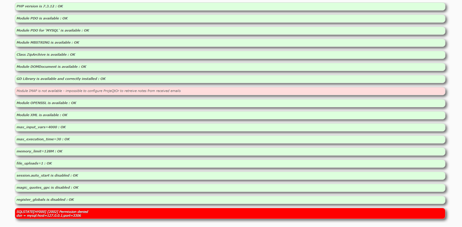 I have an error when doing my first installation of projeqtor on redhat 7 concerning IMAP module being not available