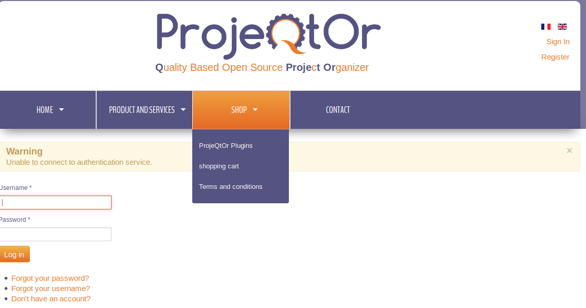 Projeqtror.net (shop) accompts are different from accounts on Projeqtor.org (forum).