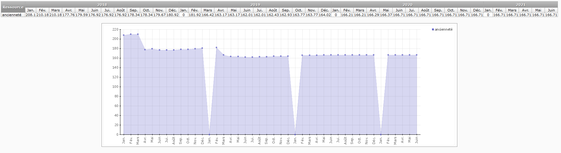 And the calculation seems strange : when forecasting, the value doesn’t change but if we do not change the ressource pool (ie if we do not insert or close resources, setting a startDate or an endDate), then should’nt this value increase by one month every month (or lenght of service is one month longer each month, no ?)