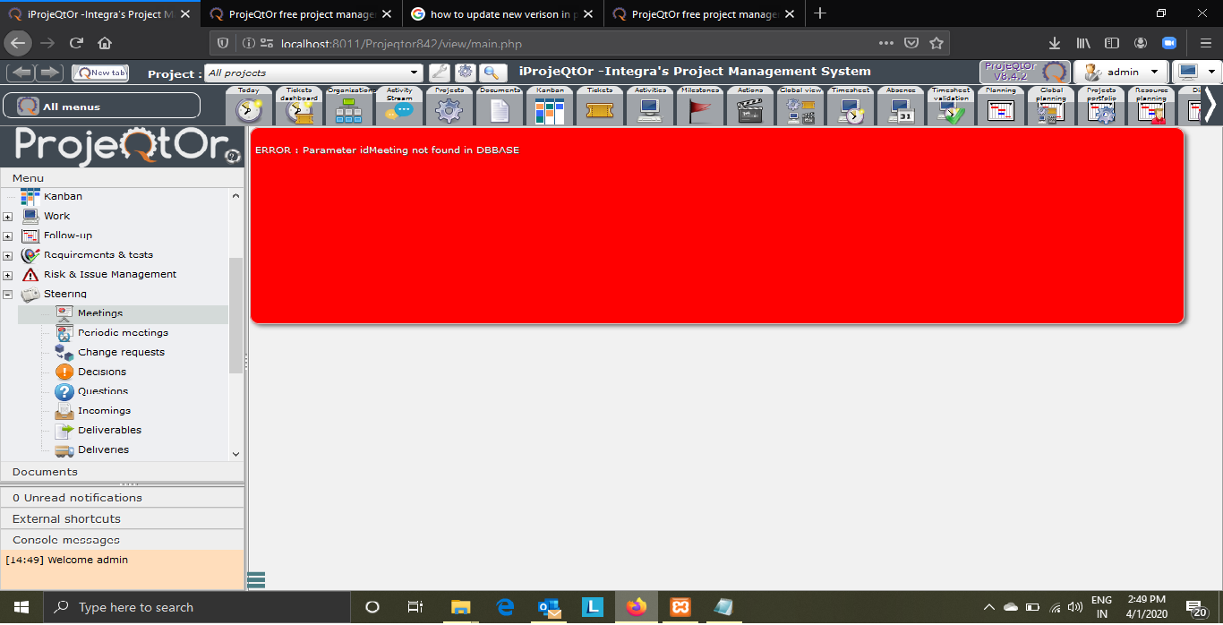 Please note Live Meeting is not working as when clicked "Start Meeting" as it says " ERROR : Parameter idMeeting not found in DBBASE"