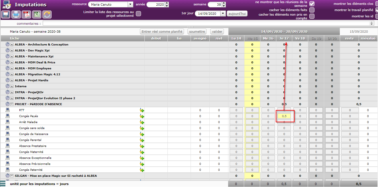 I confirm that when the leave periods are accepted, in the timesheet we see both (version 8.6.3), but when they are only submitted, the issue still remains, we can only see 0,5 as planned for the day.
