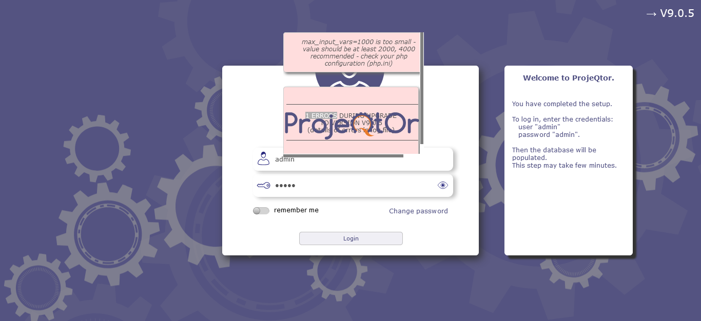 ProjeQtOr free project management software - Error in install og 9.0.5 - ProjeQtOr