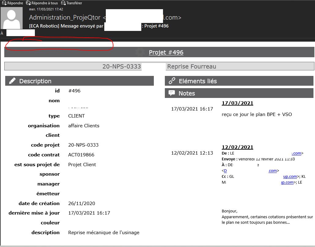 ProjeQtOr free project management software - pb with message on email - ProjeQtOr