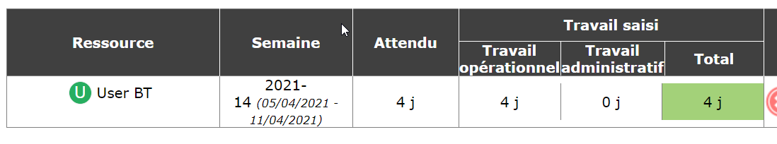 But the main issue is that on the timesheet validation's screen only 4days are counted and everything is green.