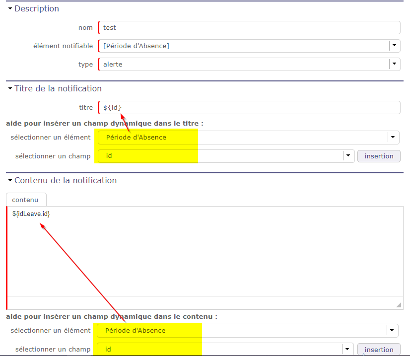 Maybe my problem is because I don't have the element "Période d'Absence", I only have "[Période d'Absence]". It's not really the same thing, is it?
