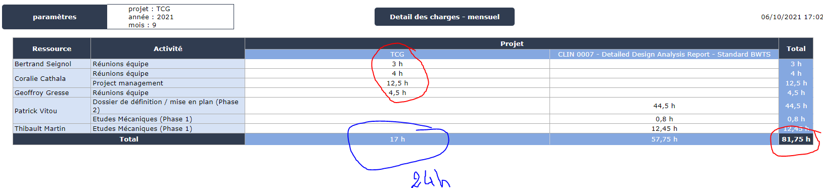 ProjeQtOr free project management software - reports : real work - Detailed work - monthly - ProjeQtOr