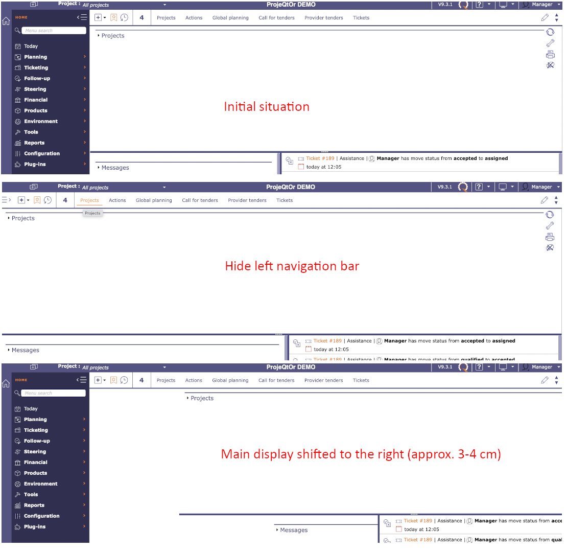 When starting ProjeQtOr V9.3.1 with the Safari browser version 15.0 the main editing area is displayed correctly (see picture 1).