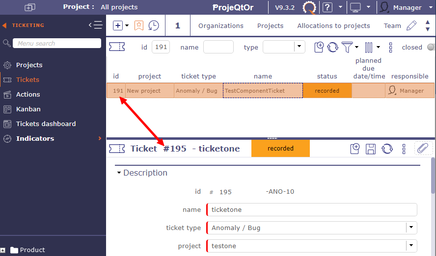 To reproduce on demo.projeqtor.org, connect with the manager user and go to the tickets.