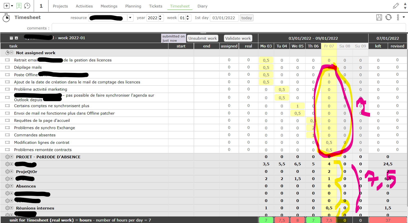 ProjeQtOr free project management software - Not assigned work isn't take in the timesheet day total - ProjeQtOr
