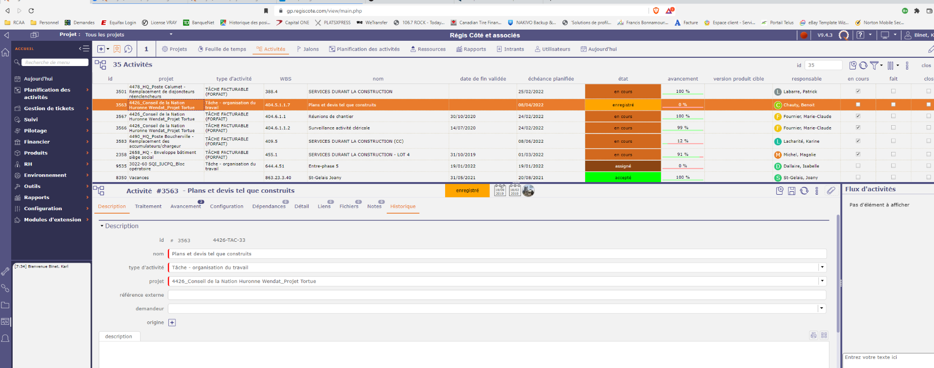 i have no error in projeqtor log files and no error in browser console, all i can see in browser console is that the delay is different on an activity that is not working.
