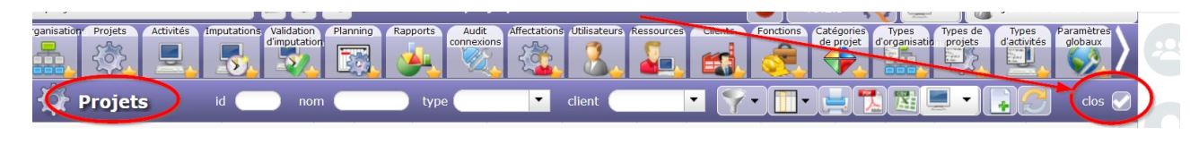 In the "projects" screen there used to be a box "Clos" allowing il checked to include closed projects in the displayed project list : see attached file "before.jpg"