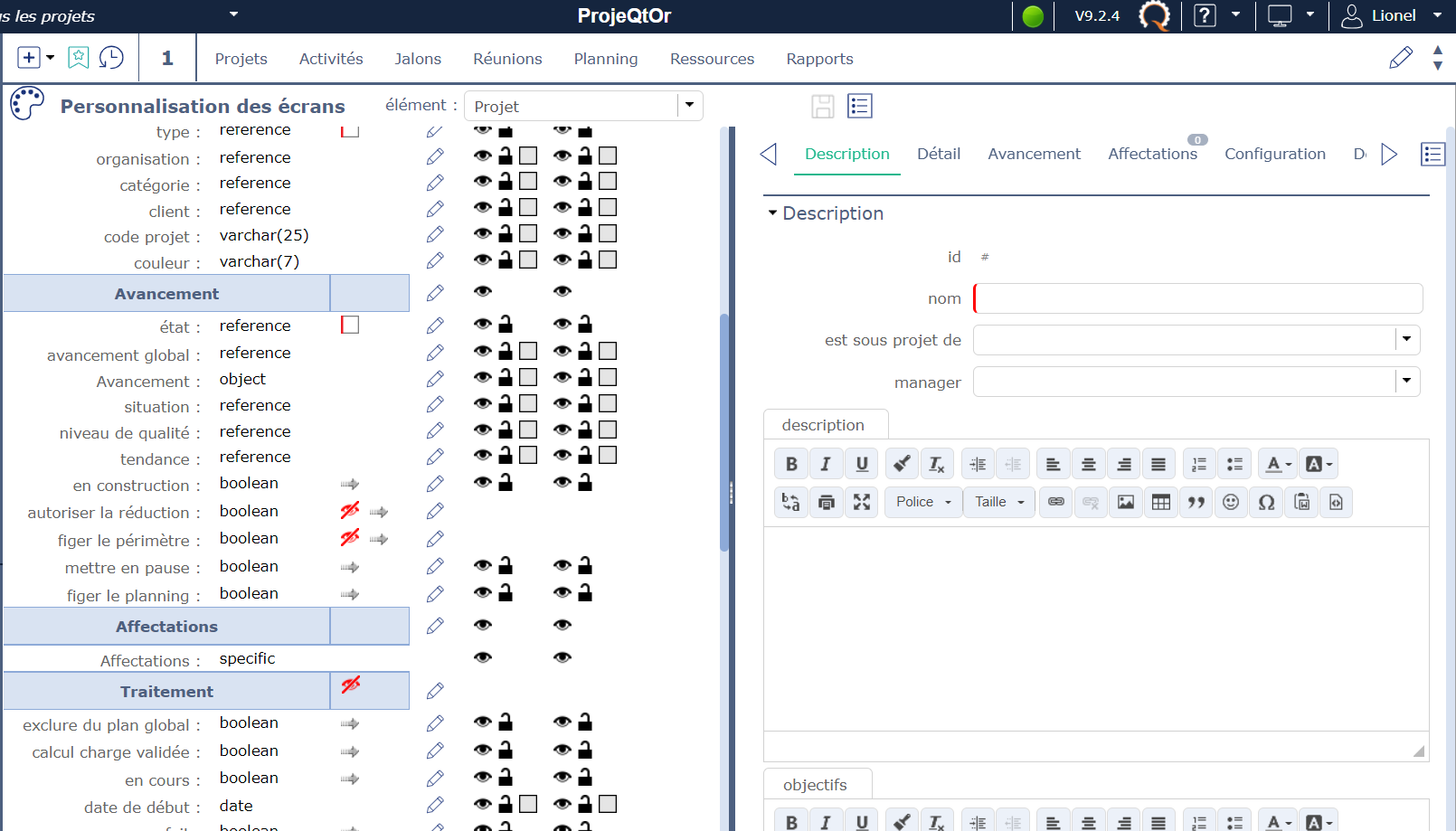 We are currently using Projeqtor V9.4.3 and plug-in Customization of screens V6.0.We are encountering 2 strange behaviors.