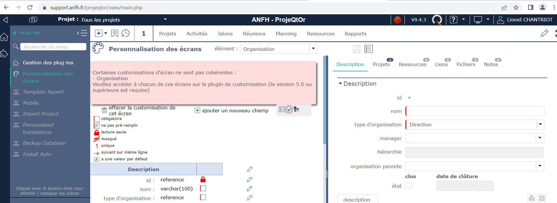 ProjeQtOr free project management software - Issues with plug-ins : error message and moving fields - ProjeQtOr
