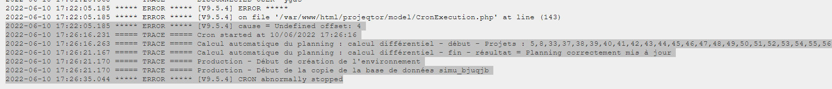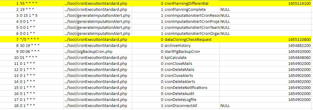 Check table 'cronexecution', if on column 'cron' you have a value with only 4 values (like * * * *), please report it here.