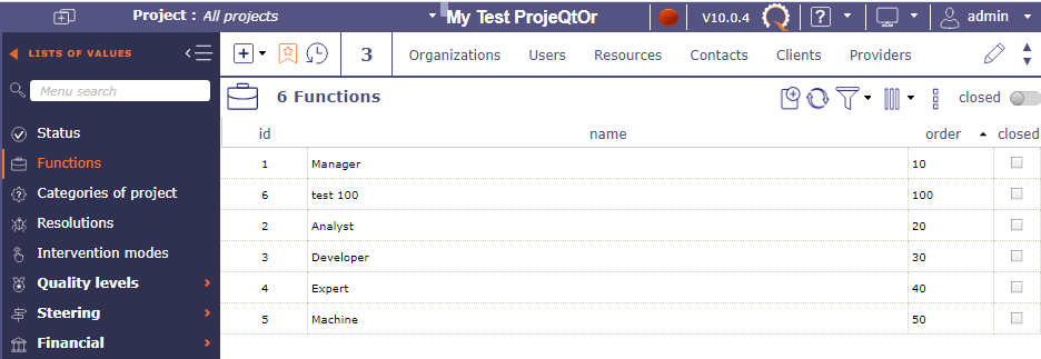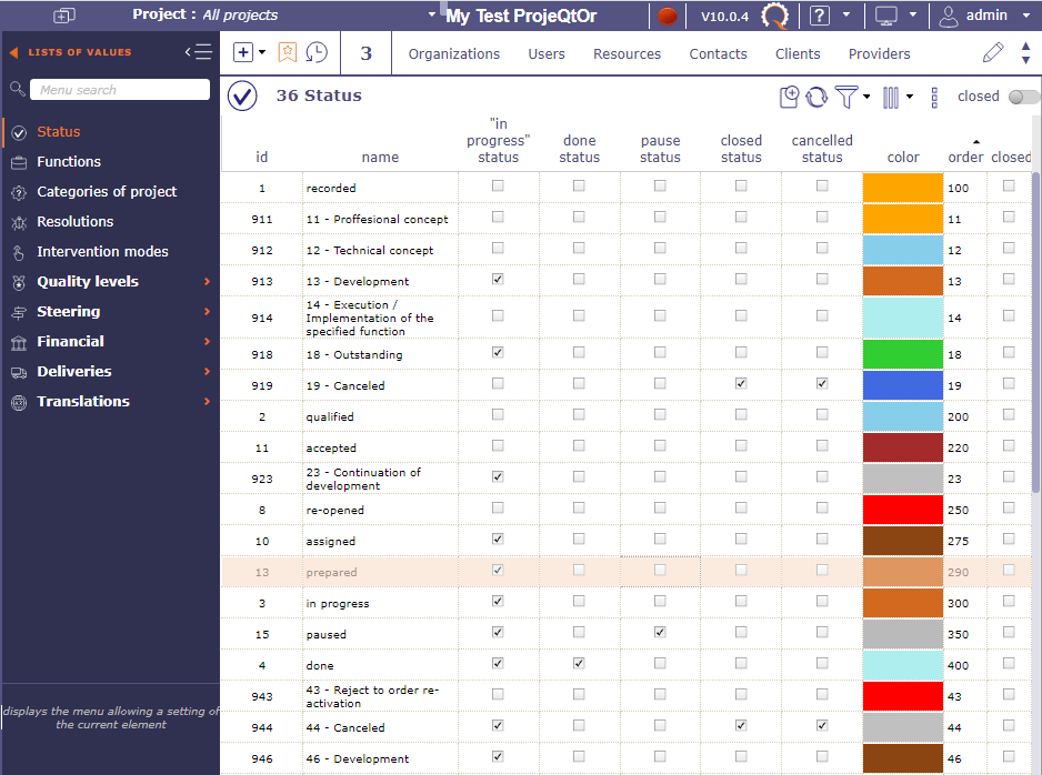 Hi,I realized that in most parts of the ProjeQtOr, if not on all of them, when shown in list, sortOrder field labeled as order is not properly sortable.Its value is numeric but is sorted in all lists as alphanumeric so it sorts wrongly.