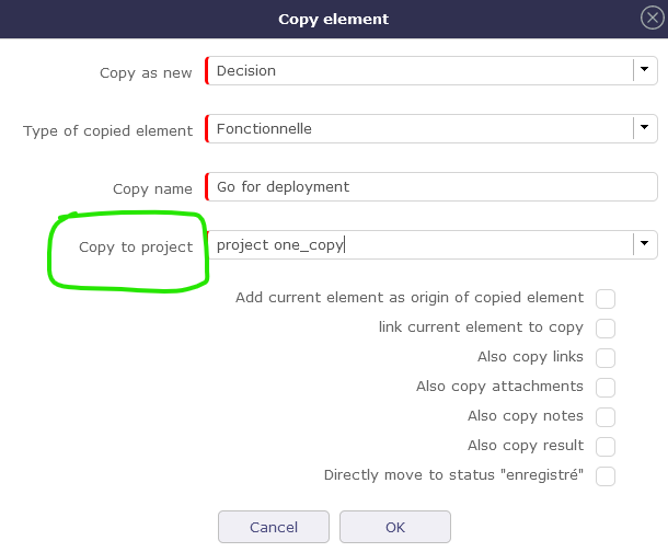 Do you think it could be possible to copie "decision" "questions" "actions" from "project modele"  to new project ?