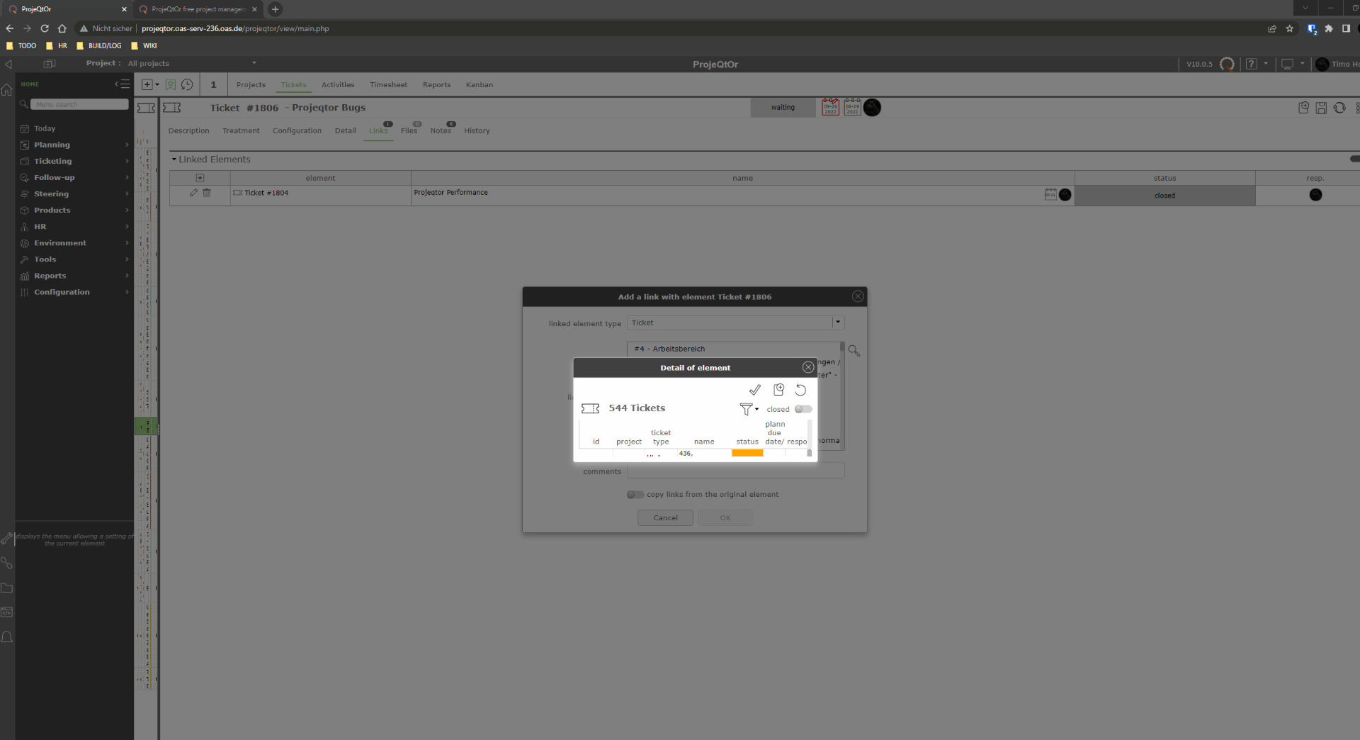 When creating a link between two tickets, the search window shrinks with the browser window, but doesn't return to its original size.