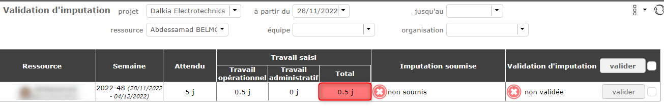 But in the Timesheet validation screen (Timesheet validation.png) we see there is a time entry for 0.5 day.