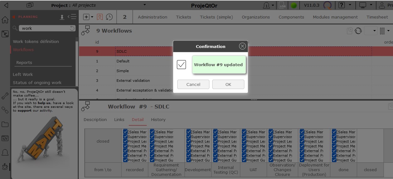Today, I encountered an unusual issue while updating the workflow for the recorded process stages: Requirement Gathering/Documentation, Development, Internal Testing (QC), UAT, Observation/Changes Closure, and Deployment for Users (Production). Initially, the addition of steps was saved without any problem. However, when I included "Done" and "Close" in the workflow and saved it, I observed that it created a loop in the process (please see the attached image for details).