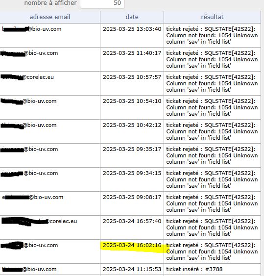 I try this morning to add the field called SAV and ticket by mailbox work again.