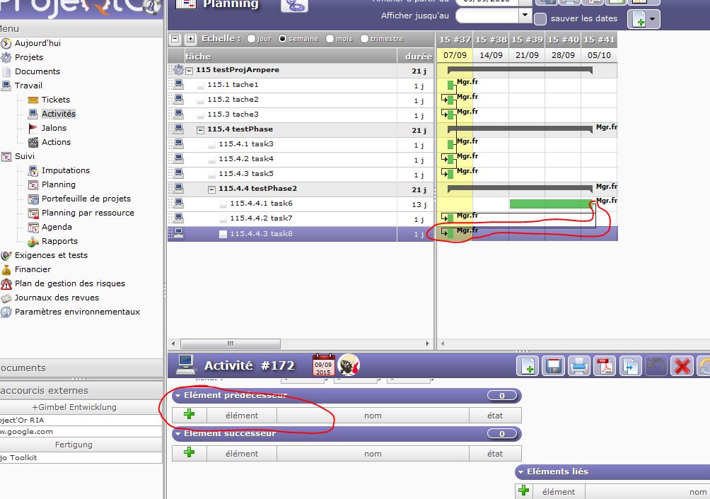 I removed all existing dependencies on "testPhase2" sub-tasks, recreated many links (from first to all others, from each to next, ...), also tried to insert assignùent in the mean time.