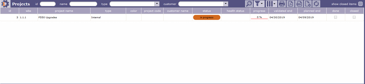 ProjeQtOr free project management software - Projects Missing - ProjeQtOr