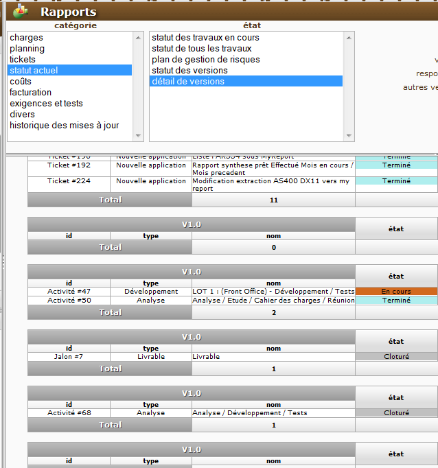 I manage several project having the same version (V1.0) so when i use the report menu and more precisely when i want to know the detail of version by project, the name of projet is missing next to name of version in the report array so it's difficult to exploit this report