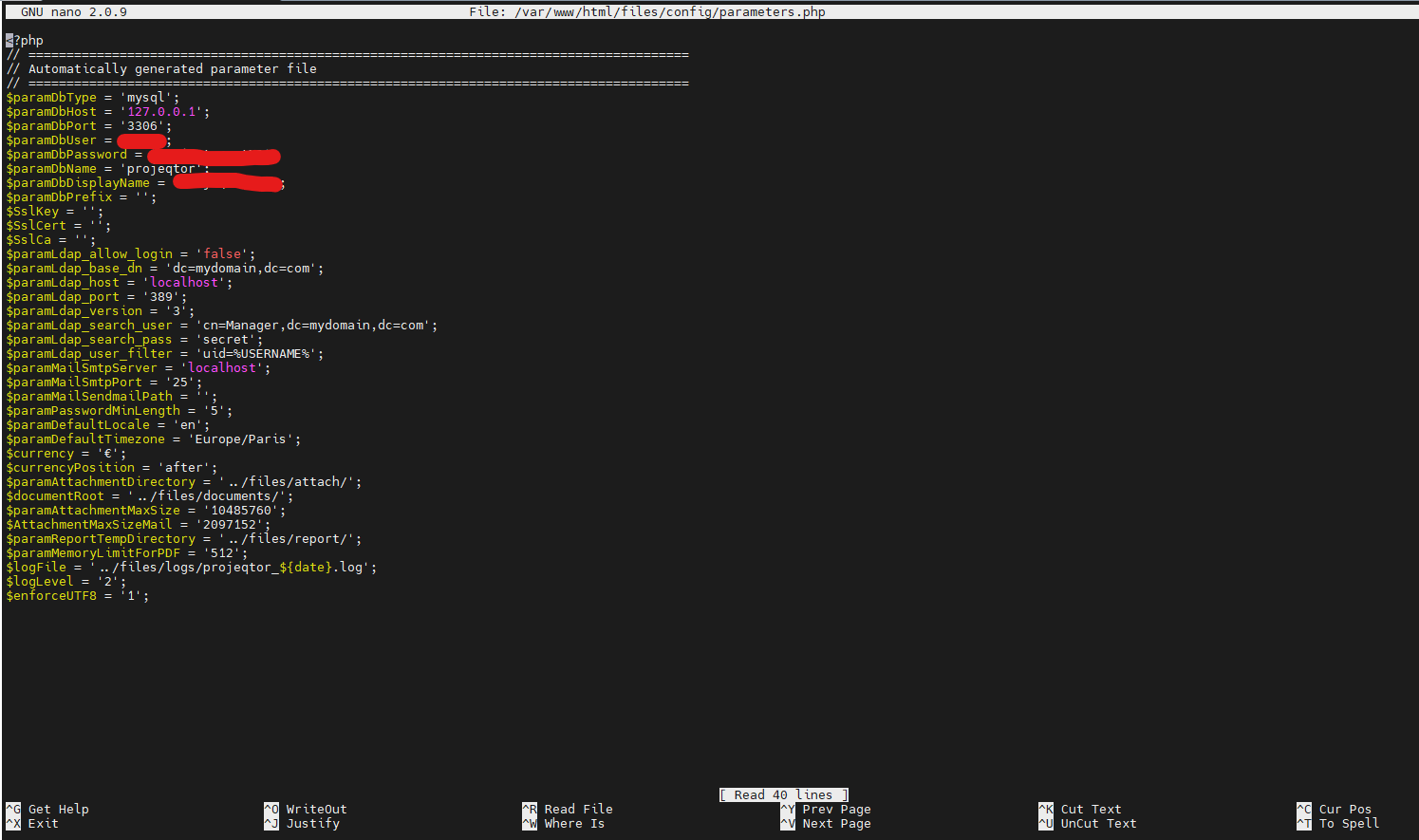 Similarly, I share an image of our parameters.php file, I see that apart from the database data there are records of some parameters, are those the ones that have to be deleted? If so, how do I remove them? I just delete them from the file?