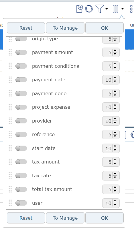 For this I have been exploring the "to manage" feature under the option "select columns to display" (please see pic attached named "to manage feature").
