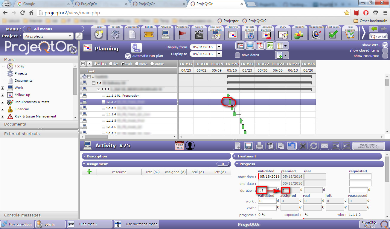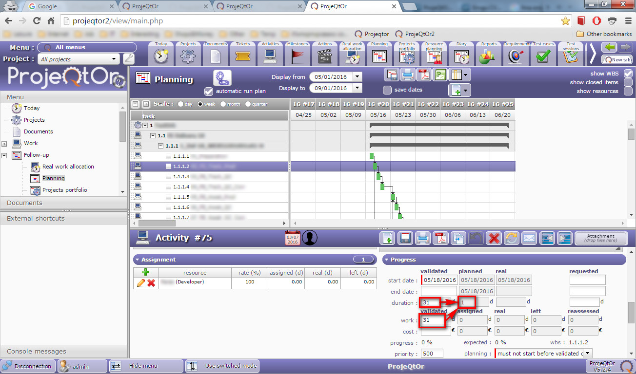 ProjeQtOr free project management software - [SOLVED] Duration in planning mode - ProjeQtOr