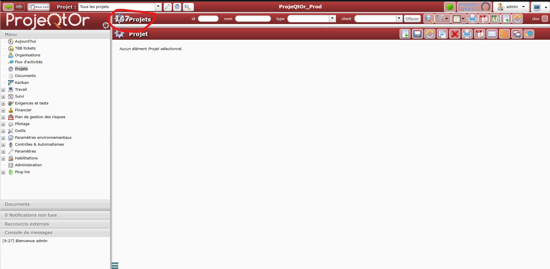 This morning I connect to Projeqtor in order to create a new project.