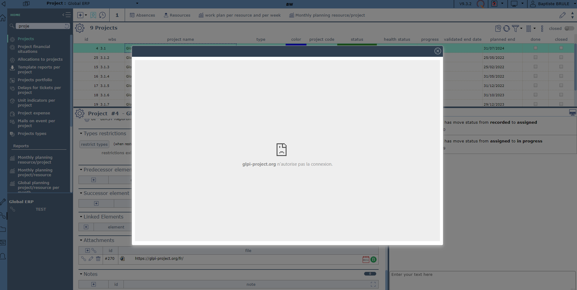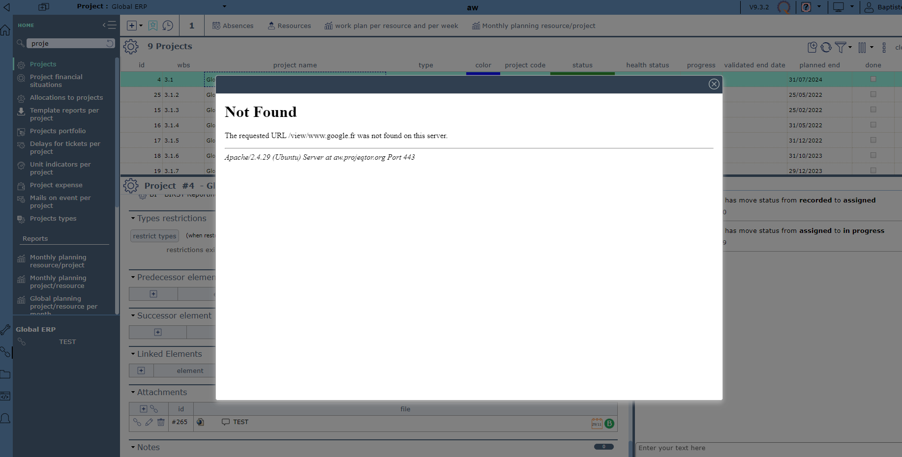 ProjeQtOr free project management software - Error message with an external link on a Project - ProjeQtOr