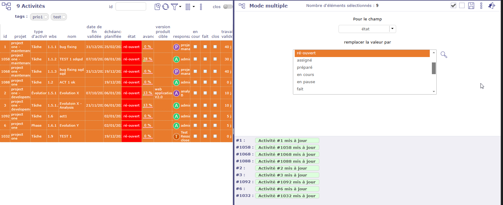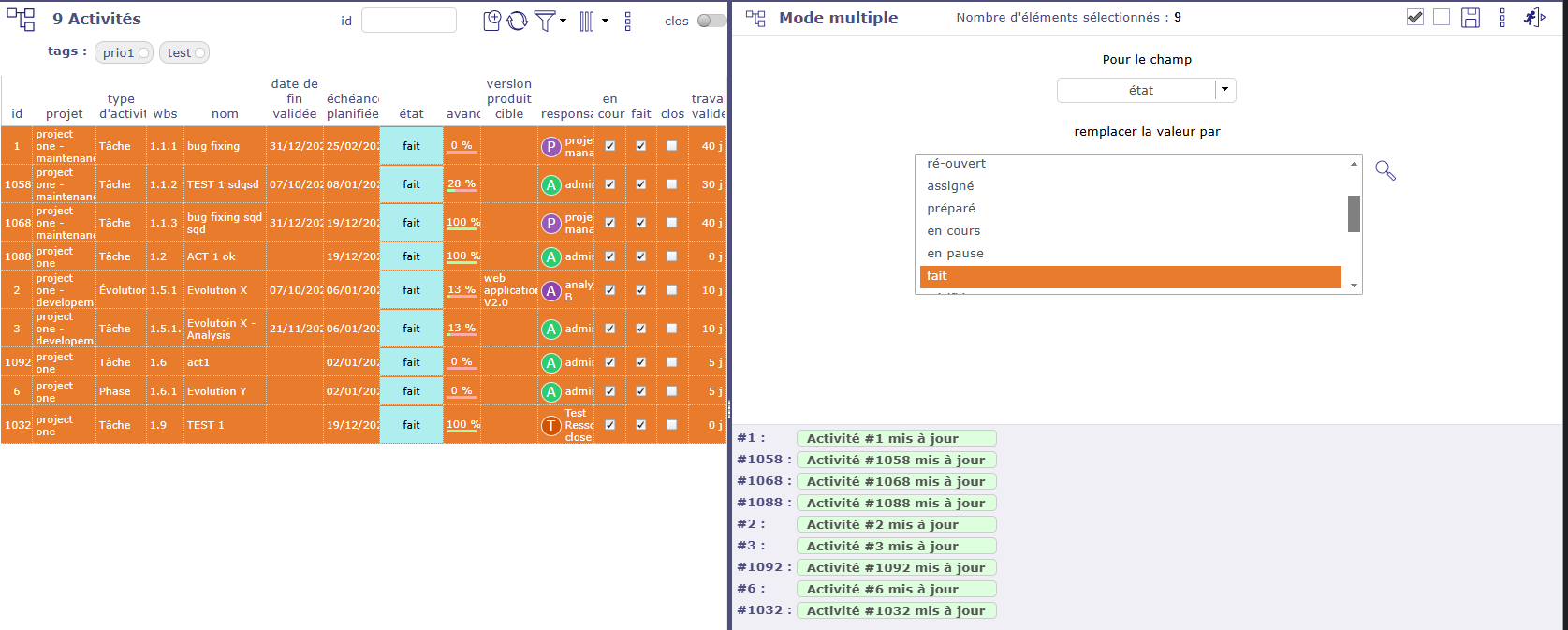 ProjeQtOr free project management software - Multiple update : doesn't change "done" status - ProjeQtOr