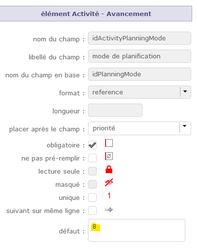and indicate for each type that you have created a default planning mode.