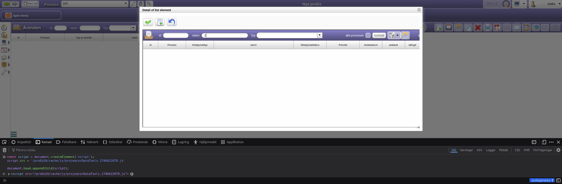 When opening "Detail of element" (Tickets > Selected a ticket > Links > Add > Search)