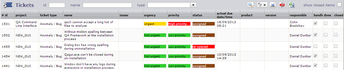 ProjeQtOr free project management software - Export Tickets to CSV - ProjeQtOr