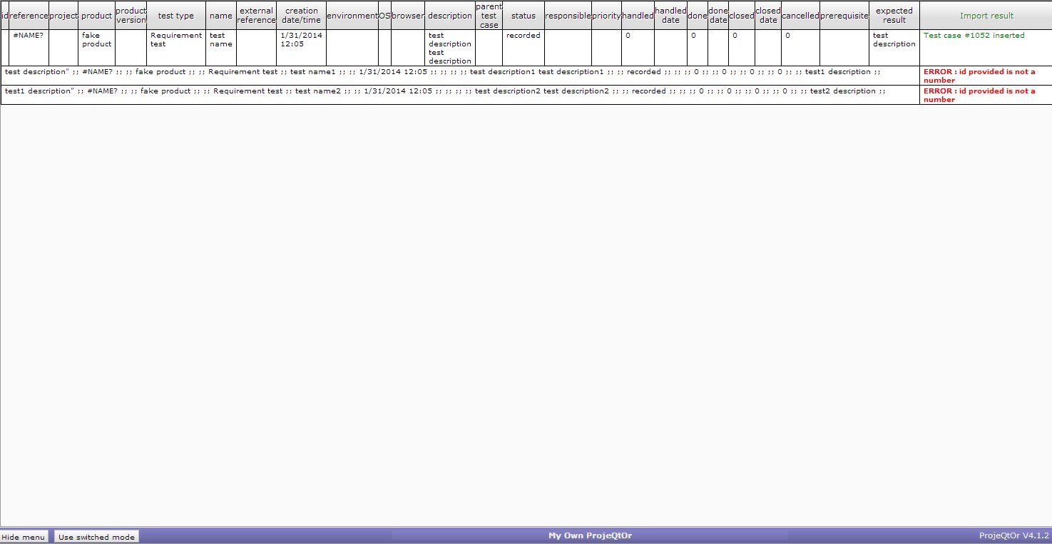 I have attached such file and screenshot with error message. I should also note that the first test case imported successfully according to screenshot. But only the first line of expected result ("test result") was imported.