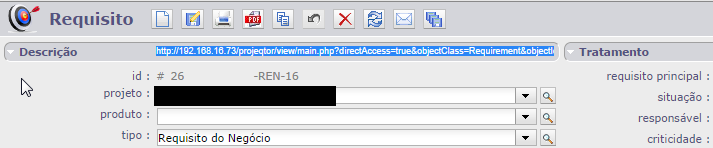 Anytime you're in a record screen (new activity, issue, risk, etc) and you you click exactly where you can see the mouse pointer in the attached picture, projeqtor show the url with some parameters.