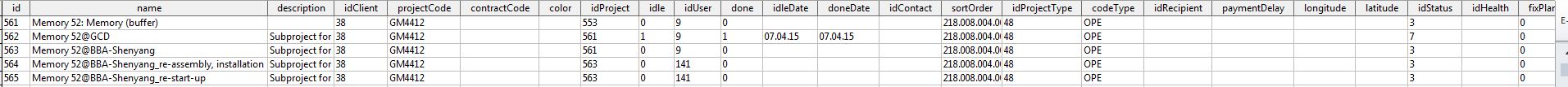 Attached you can find a screenshot from the table "project" and the respective screenshot from Projeqtor in the planning view.