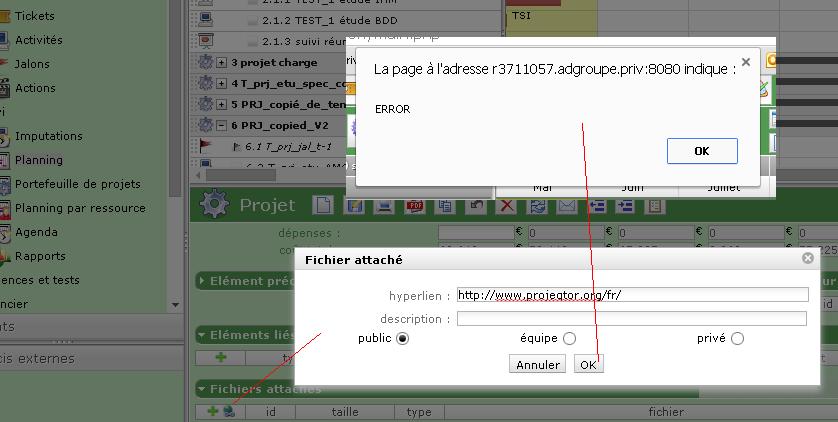 ProjeQtOr free project management software - external hyperlink creation KO - ProjeQtOr