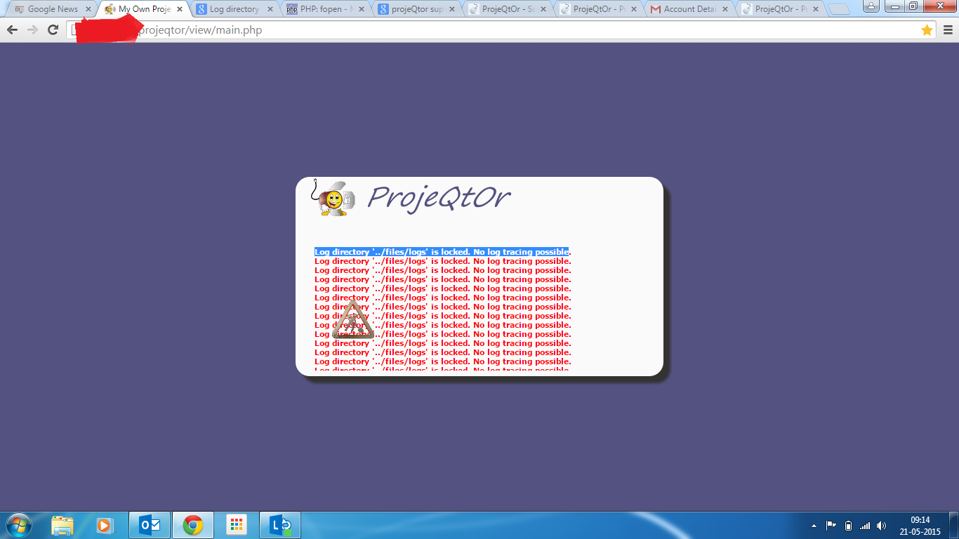 log directory /files/logs is locked : it means you cannot write in this folder, and than cannot log messages.