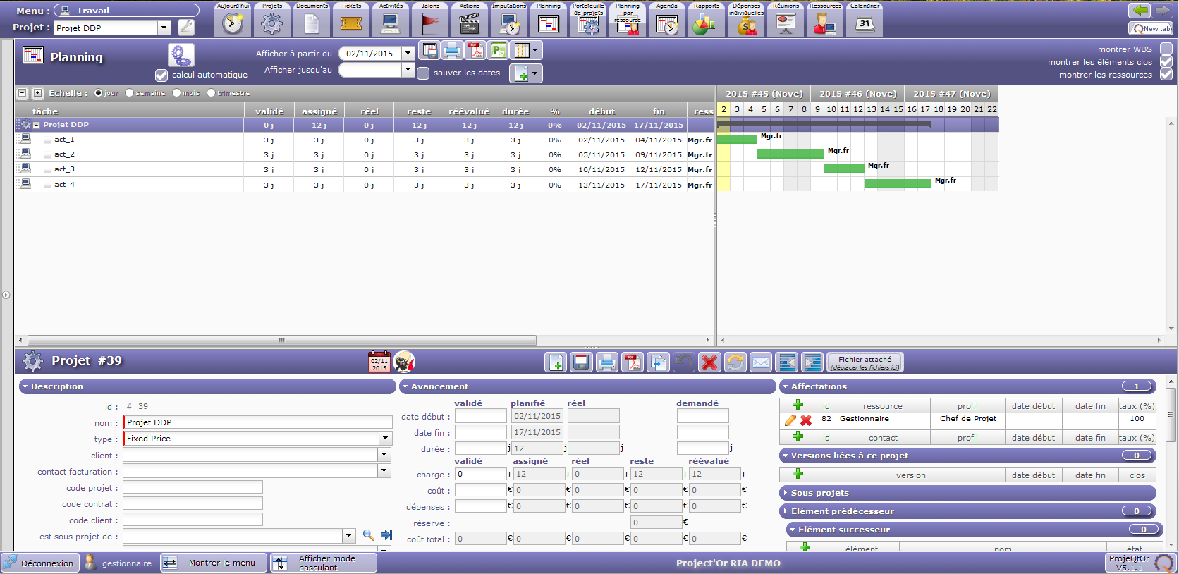 you can try with the "projet DDP" on the demo site. (copies : projet DDP_2 and DDP_3 DDP_4).