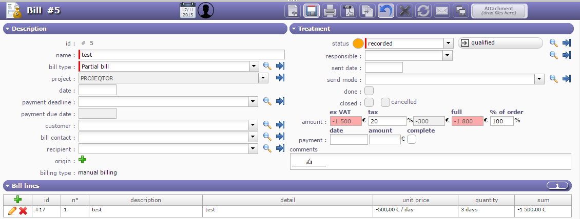 ProjeQtOr free project management software - [SOLVED] Negative amounts (credits) shows up as "null €" in financial elements - ProjeQtOr