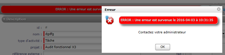 I have a problem when i want record a task, ticket, activity or action.