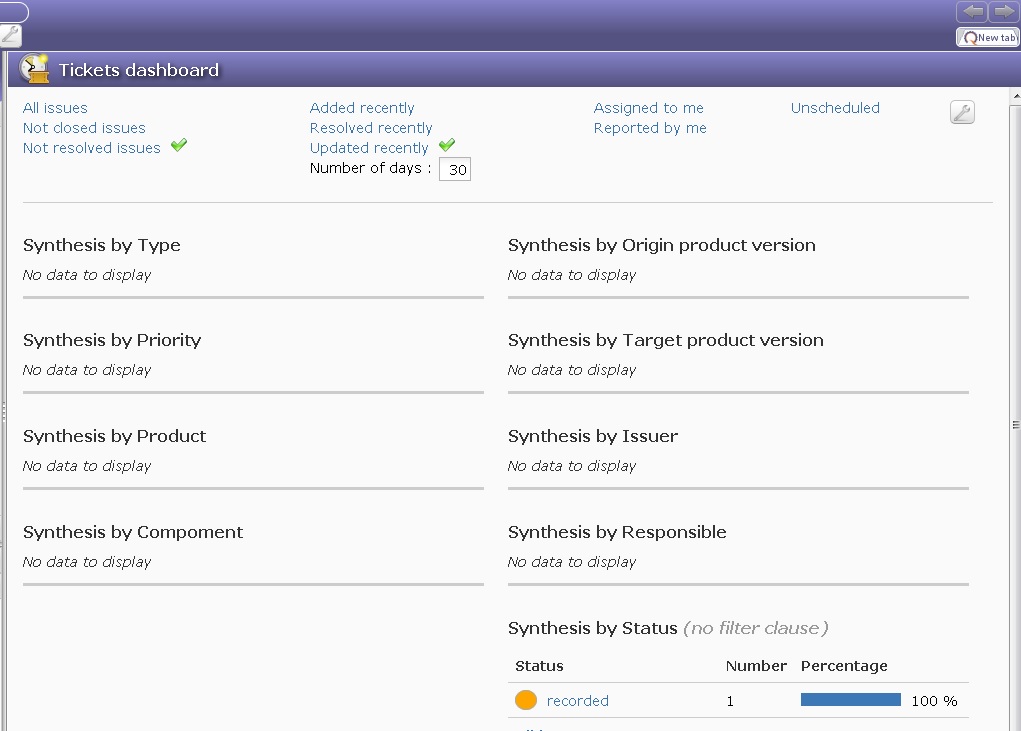 With just one ticket in status recorded, the dashboard filtered as in the attached image
