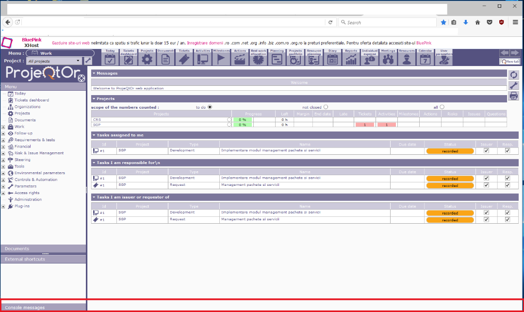 ProjeQtOr free project management software - Bottom bar not displayed - ProjeQtOr